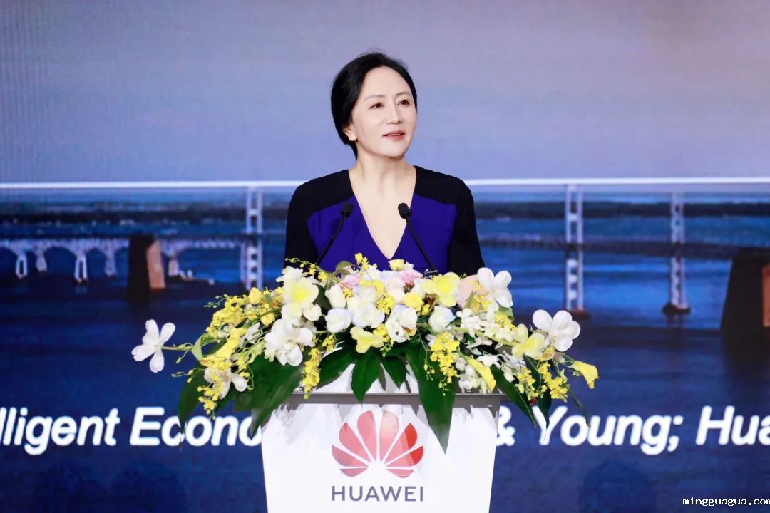 华为副董事长、轮值董事长、CFO孟晚舟在大会上作主题演讲