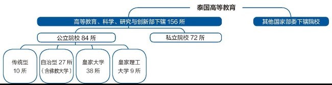 此前,传统型公立大学完全依靠国家财政拨款,这种模式慢慢限制了大学自身的发展速度和规模。1990年,首个自治型公立大学——苏拉那丽理工大学(Suranaree University of Technology)宣告成立,其优势在于行政管理、课程设置等方面的高度自主性使管理体系趋向多元化,但仍接受政府的财政支持、审查和监督。