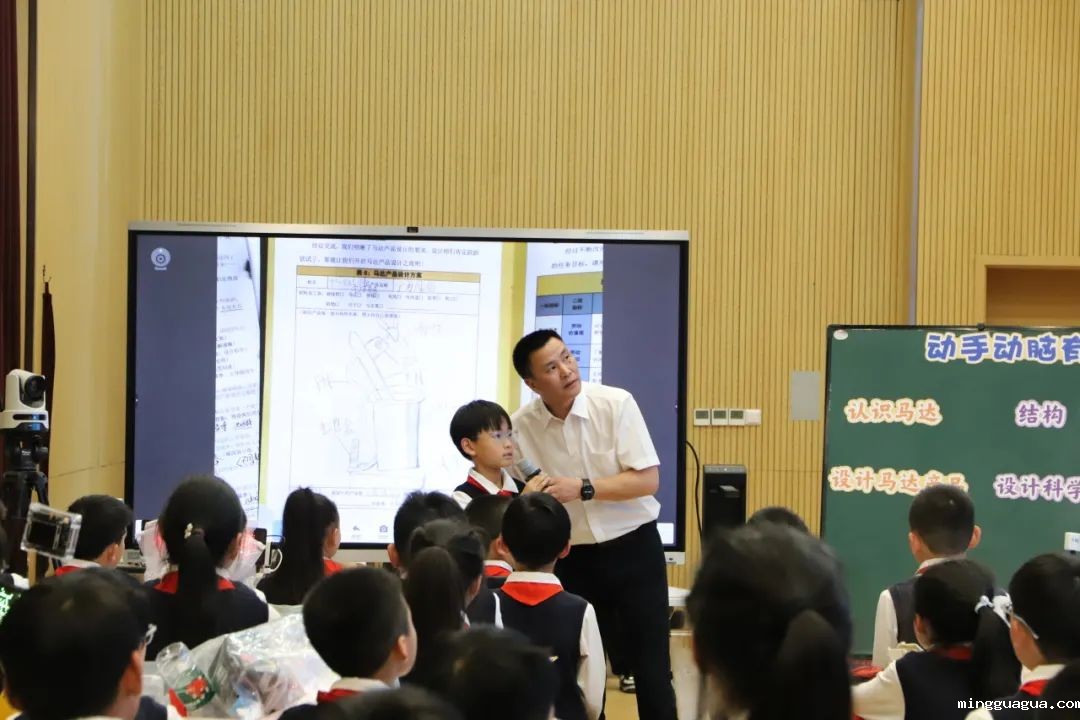 在教学展示环节,浙江省平湖市乍浦天妃小学教师高建指导学生优化马达产品的设计。学校供图