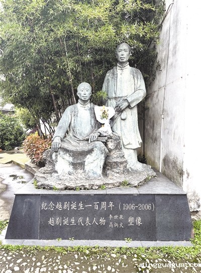 与东王村相隔10多公里的施家岙村是女子越剧诞生地,越剧博物馆(新馆)也坐落在此,是全国首家专业戏剧博物馆。馆内收藏越剧文物、史料3万多件,翔实而系统地展示了越剧所经历的风风雨雨和不断改革创新走向繁荣的历程。展厅内,一张泛黄的“越剧十姐妹”照片引人注目。十姐妹包括袁雪芬、尹桂芳、筱丹桂、范瑞娟等,个个都是名角。1947年,她们为了反抗旧戏班制度,筹建自己的戏院和戏校,策划并义演《山河恋》,轰动上海。田汉发表文章热情赞扬,“越剧十姐妹”因而得名。那年她们的平均年龄24岁。
