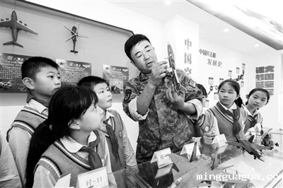 10月18日,在安徽省合肥市庐阳区海棠街道国防知识科普馆,庐阳区实验小学学生在学习国防知识。当日,海棠街道武装部联合辖区小学开展“青春如火,国防有我”主题教育活动,通过介绍武器装备模型、开展国防知识讲座等形式,增强青少年国防意识和爱国热情。