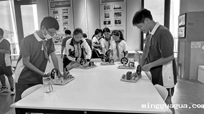 广东省深圳市盐田区外国语学校的学生在进行趣味实验。学校供图